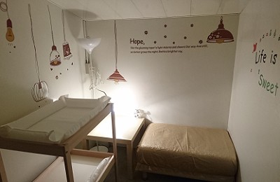為了不讓媽媽們不用躲在倉庫中哺乳,我們設置了育嬰室。