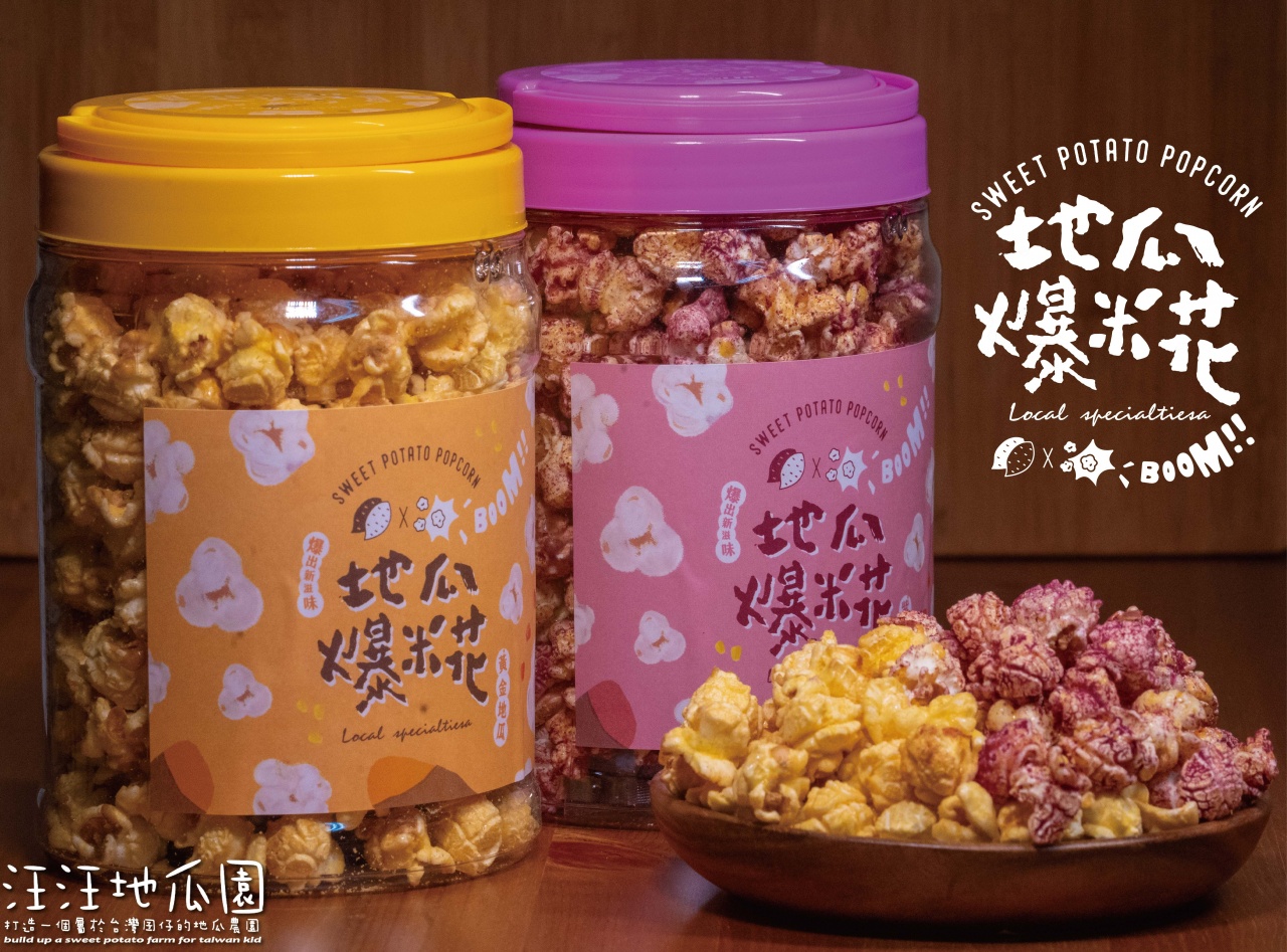 以台灣原產台農57號黃金地瓜及台農73號紫玉地瓜結合美國 MAGIC MUSHROOM POPCORN 非基改玉米粒製作而成,更選用進口棕櫚專用油及富含大豆卵磷脂的專用糖,讓地瓜爆米花在製作過程中更加穩定及安全!! 創造出充滿驚艷的美味!!