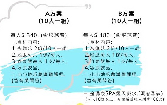 A.烤地瓜專案 每人340元起(含服務費)